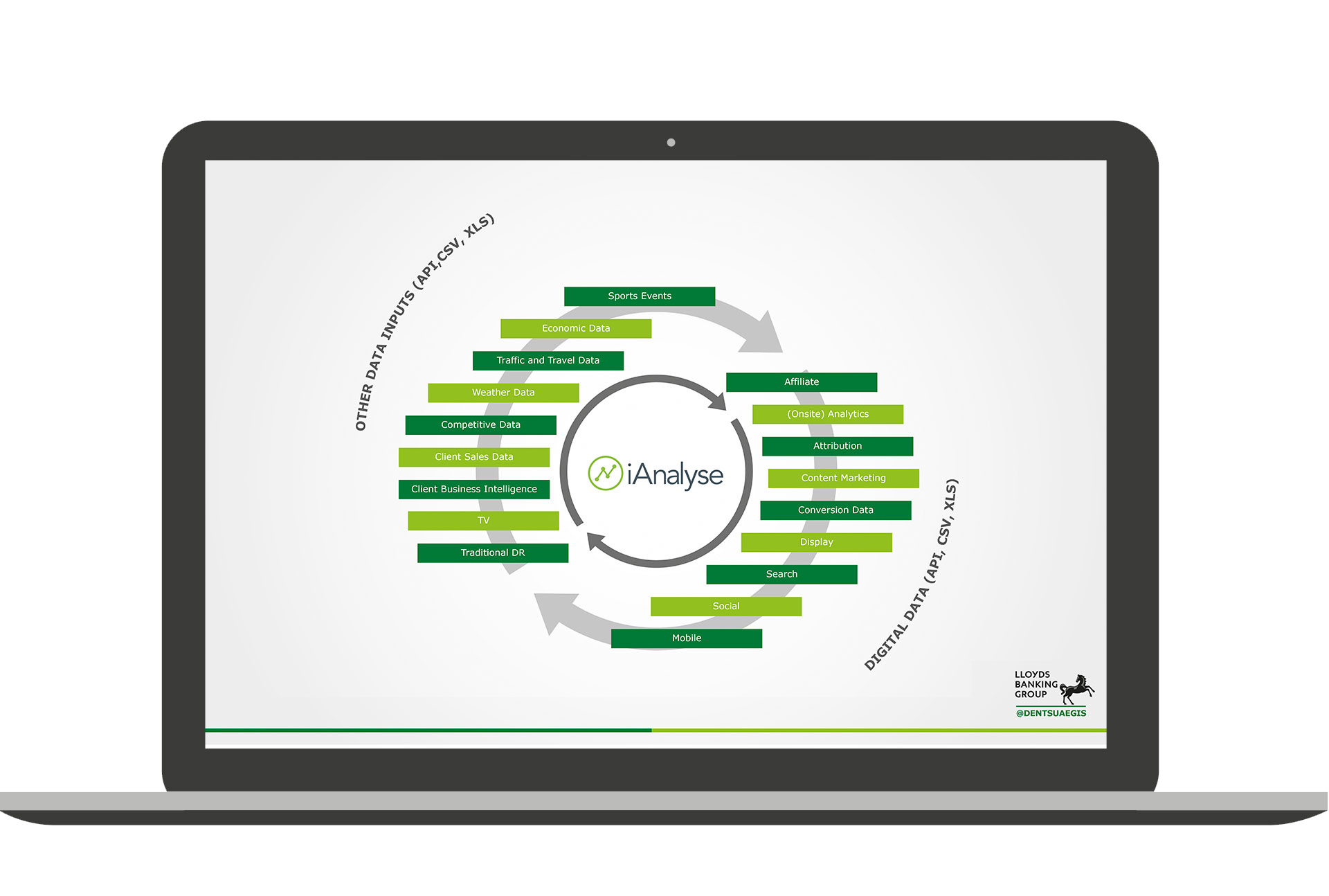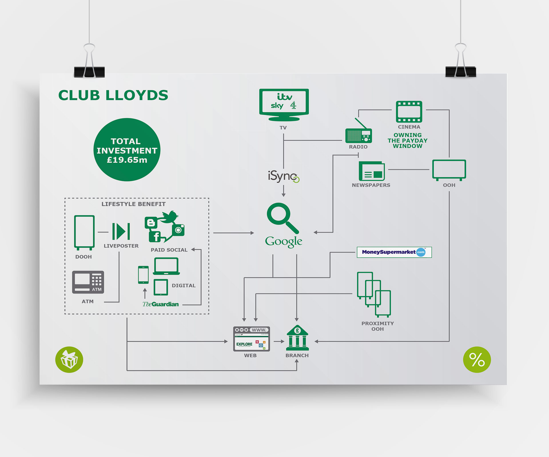 Design of key elements such as graphics, icons, charts and ecosystems, used in a media presentation for a Lloyds pitch, as well as other marketing collateral.