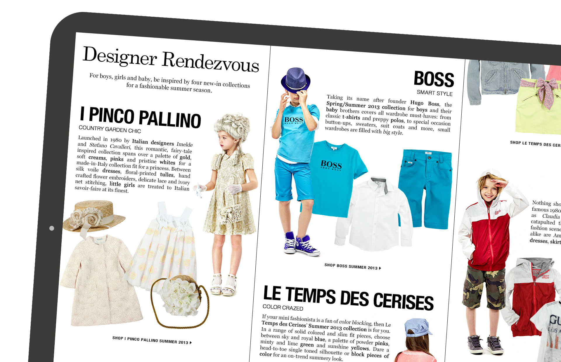 E-commerce company where the children are dressed in creations by luxury designers and high-street brands. Based in Paris, the website is available in 8 languages, with international distribution and communications to approximately 150 countries worldwide.