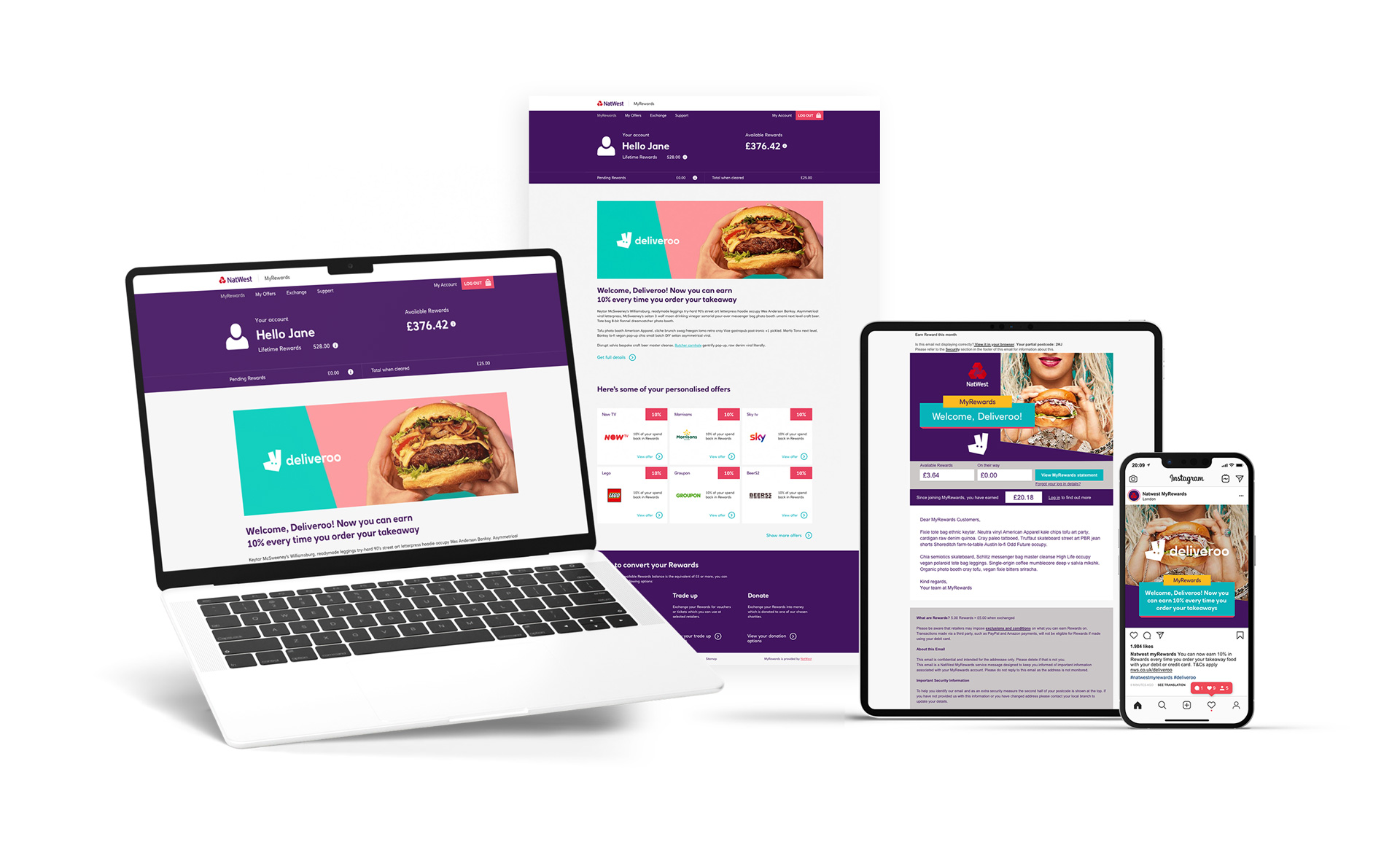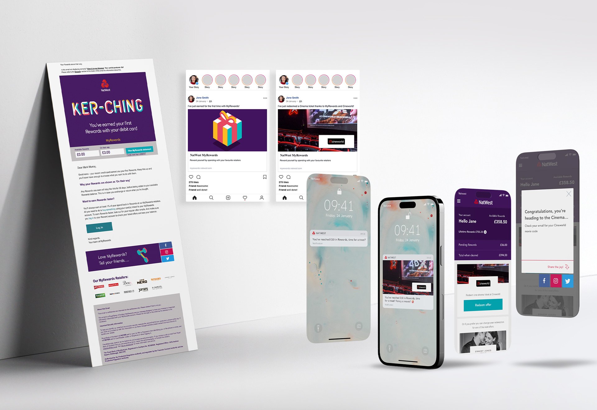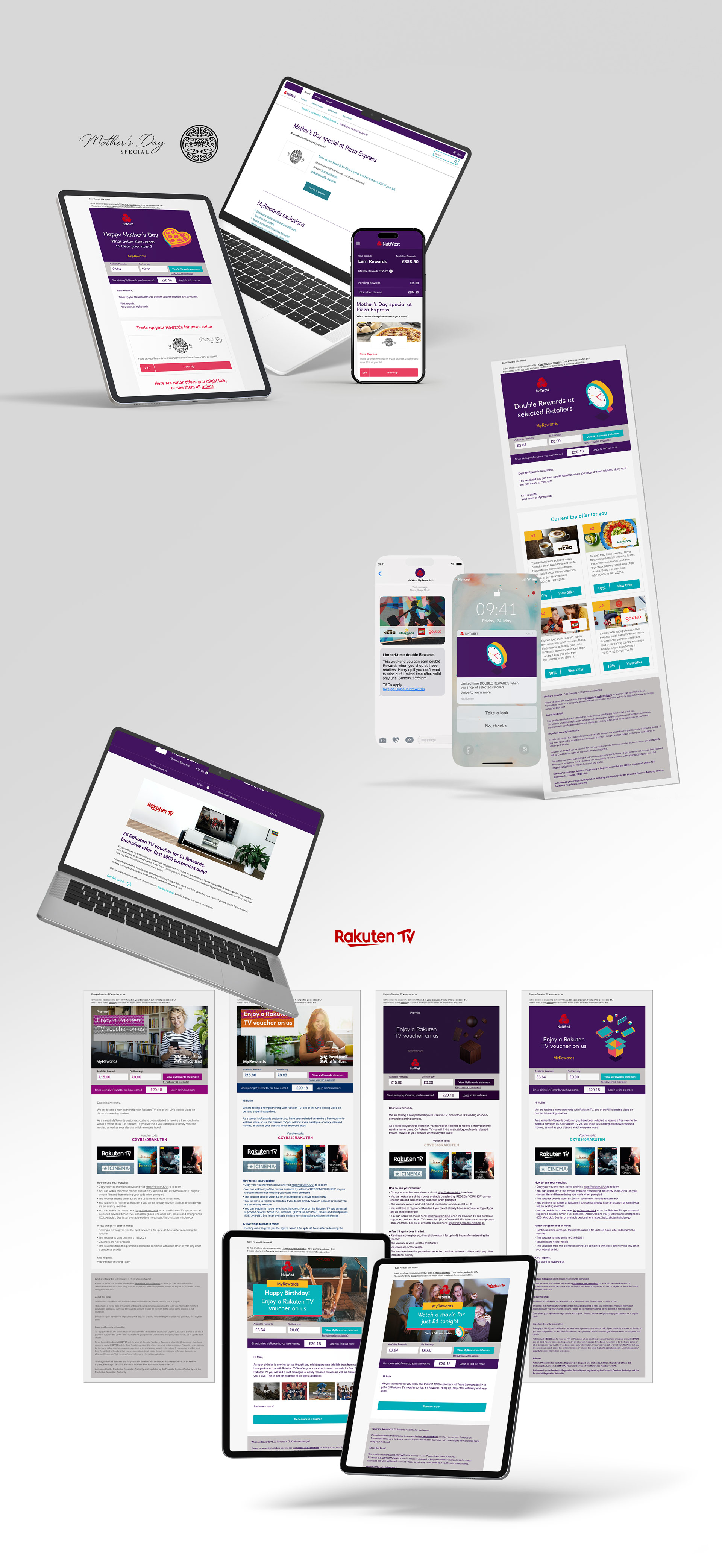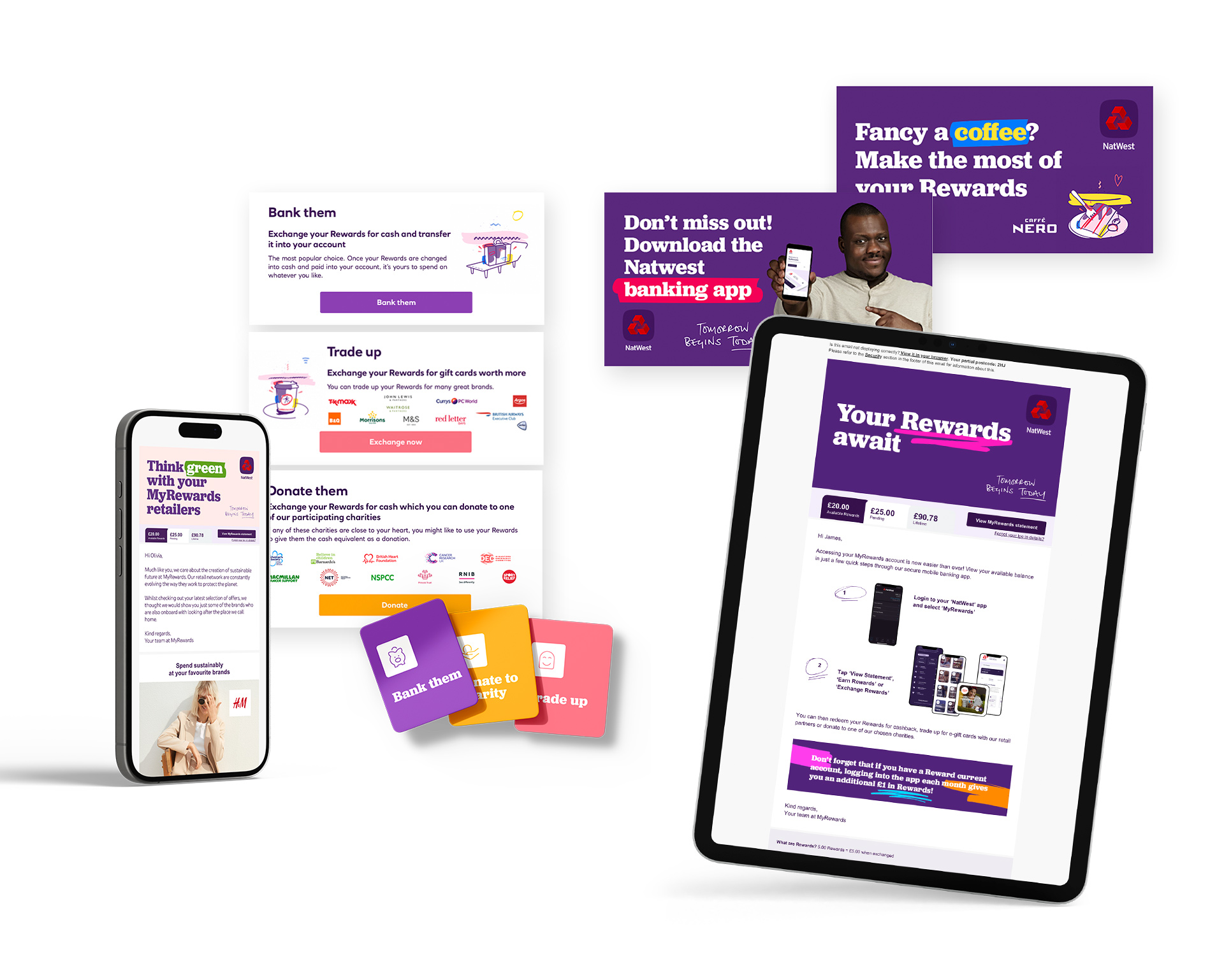I led the design with creative strategy across all digital marketing channels for the NatWest Group, including RBS and premier accounts. From planning to strategy, everything was bespoke and tailored to clients and retailers, including newsletters and email comms, targeted offers, retailer campaigns, social media, push notifications, main website, landing pages and branded microsites. All was tailored to align with both customer behaviour and partner goals, focusing on awareness, engagement and conversion.