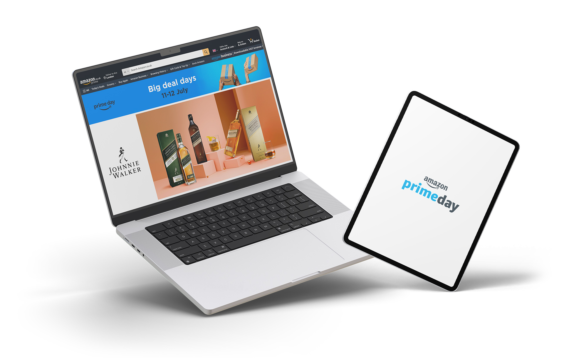 Design of a series of main visuals and online banners for Prime Day. The product bundles were selectively chosen after analysing shopper behaviour. This marketing approach had the goal of increasing awareness and engagement for the Amazon customers interested in Diageo's products, driving participation, and boosting sales.