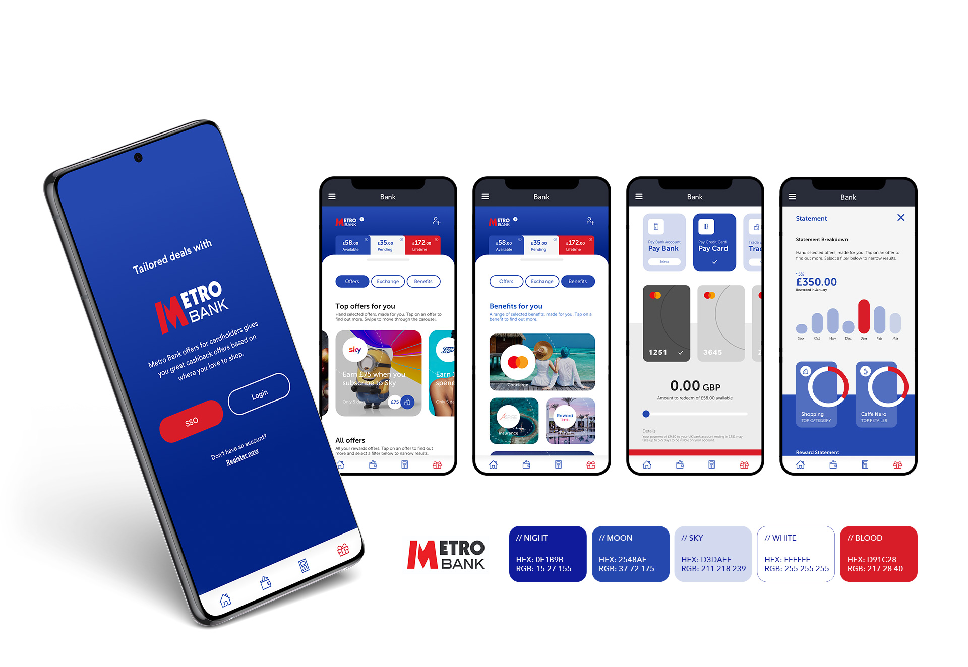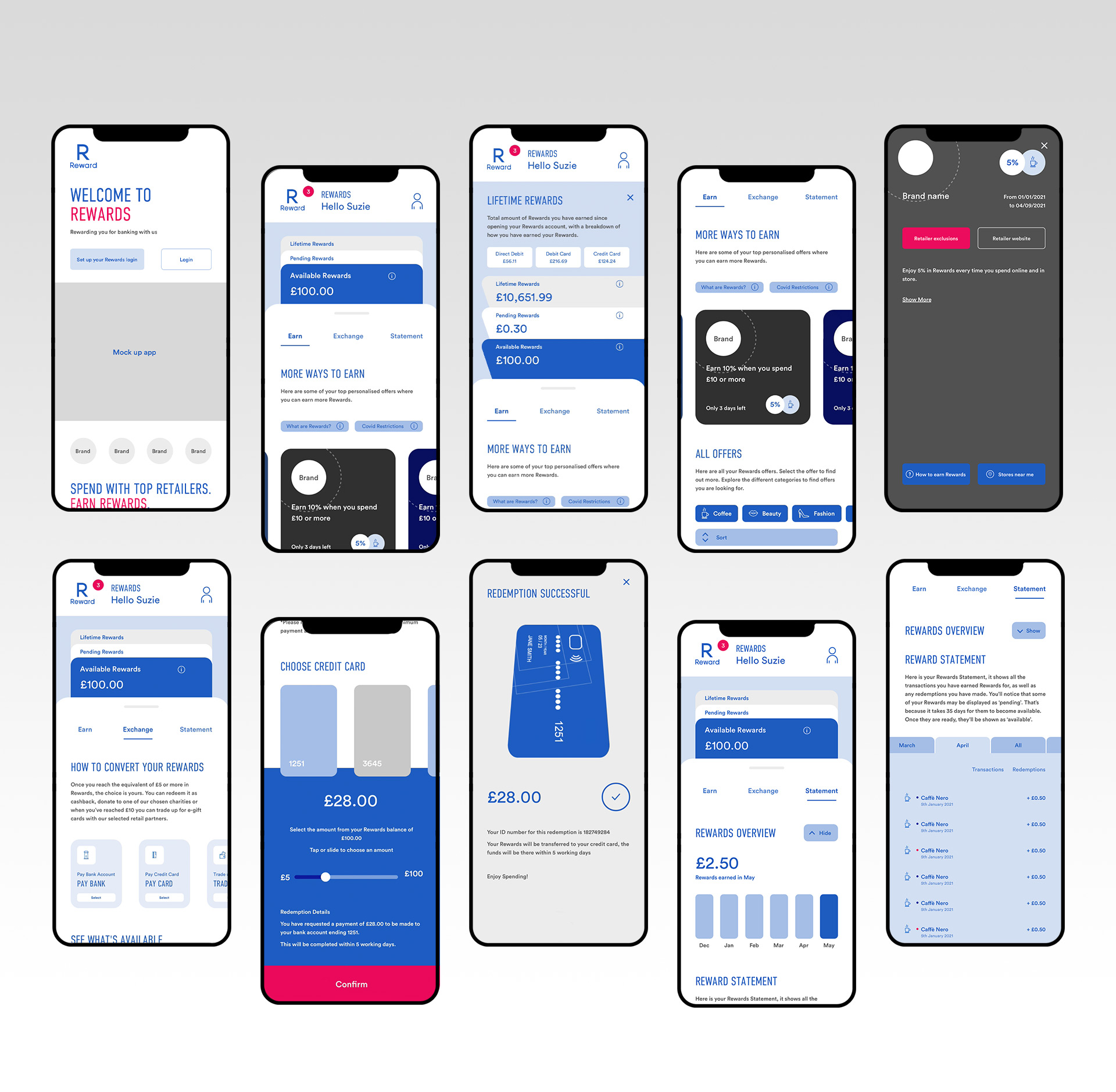 UX/UI and prototype of a main financial rewards app, to be used as a loyalty card designed specifically for banks.