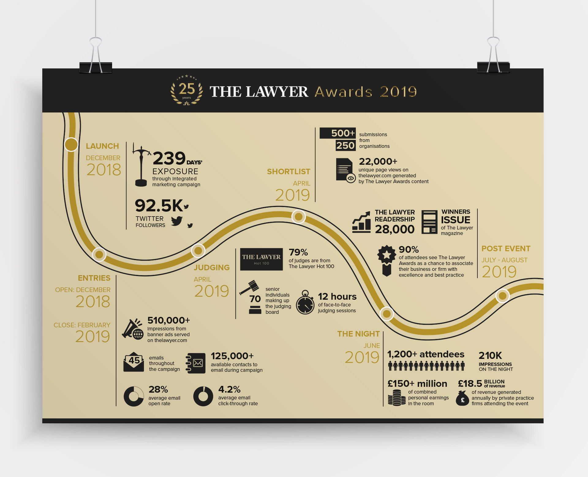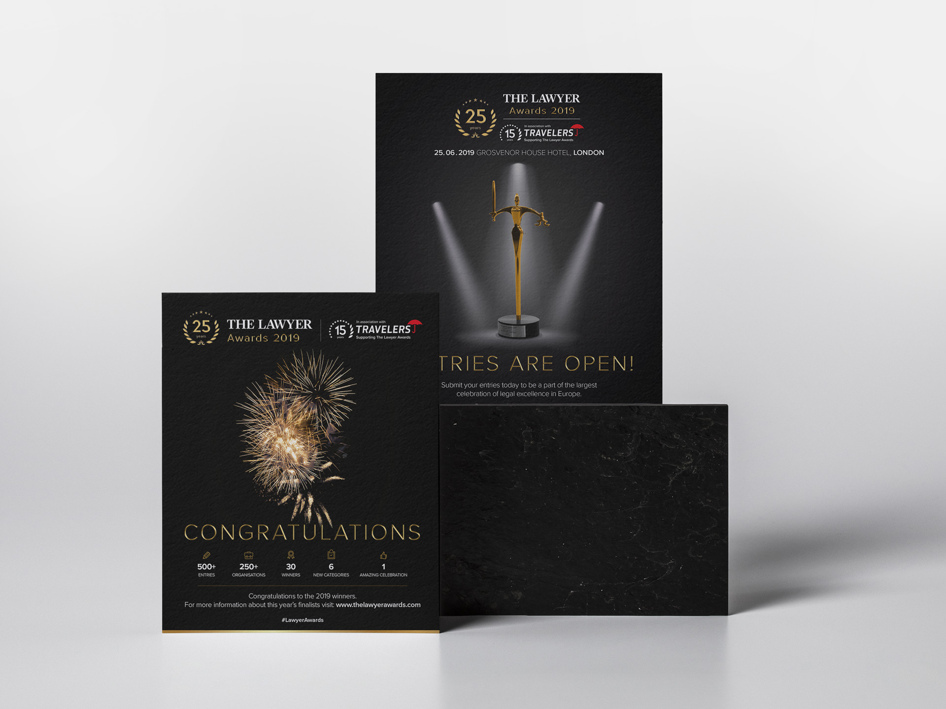 Design of a new logo to celebrate the 25 year anniversary of The Lawyer Awards, as well as managing the integrated marketing campaign from its launch to all collateral for the event.
