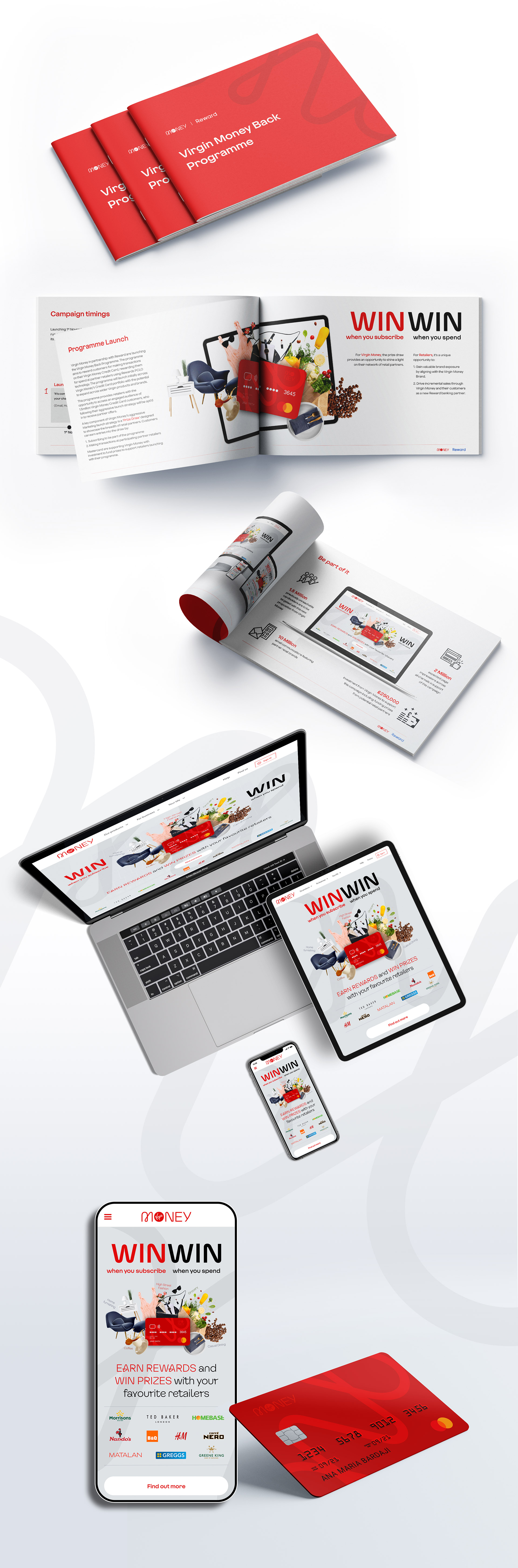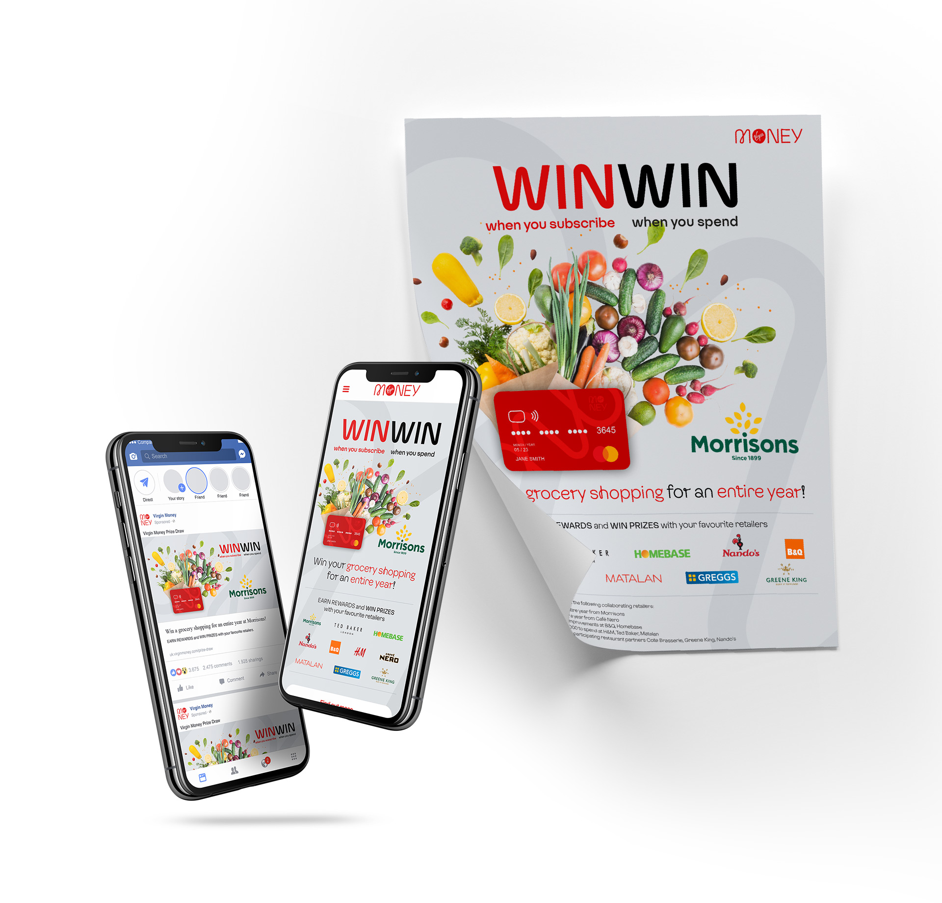 For sales purposes, I designed and developed a marketing launch strategy based on a ‘Prize Draw’ to showcase the breadth of retail partners. A fully integrated media strategy that supports the promotion across Virgin websites, Virgin Money app, emails and social media channels. The participant retailers can also have personalised information in order to promote their brand and their prize, eg. Morrisons.