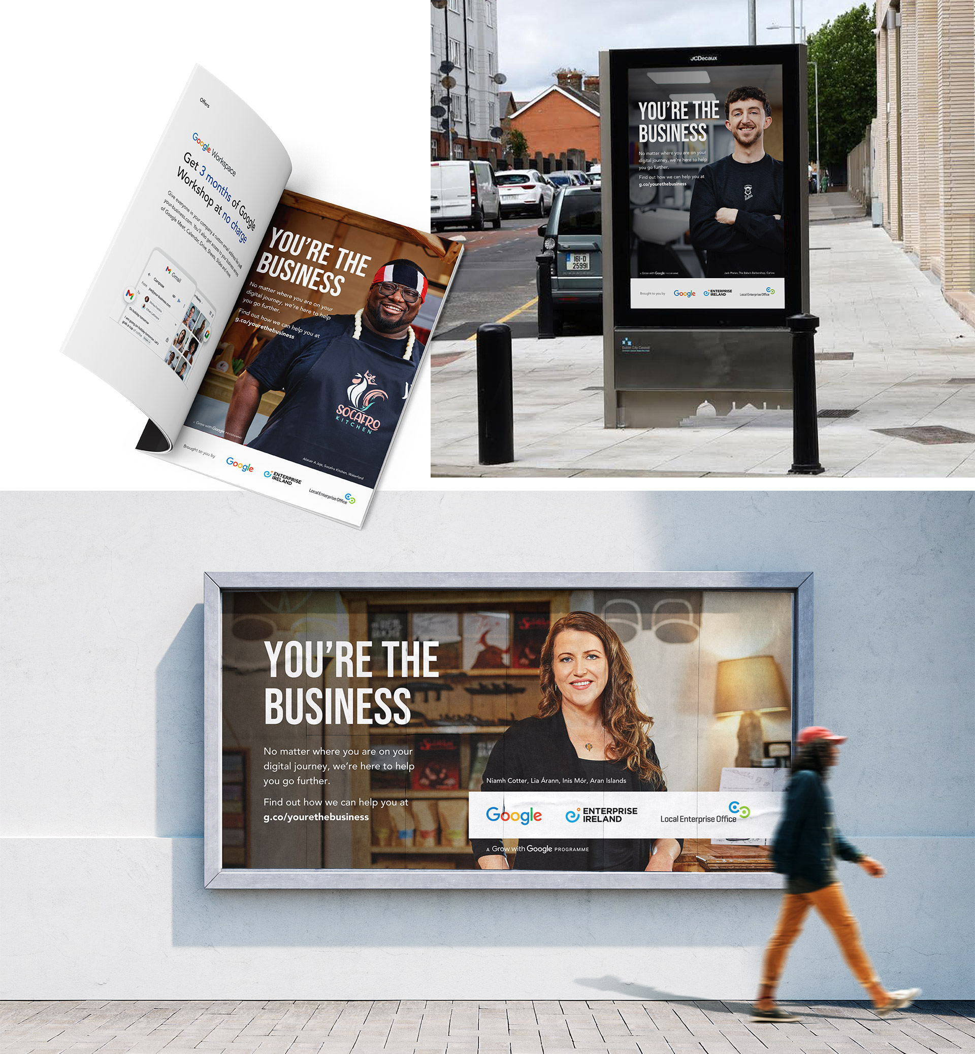 ATL and BTL campaign done for Google Ireland, released in Dublin. The image of the campaign was a selection of four Irish business. I came up with the concept idea and the work was extended to OOH, print and online ads, websites, emailing, training courses, presentations, radio ads, video and event production. The campaign has been featured in several press publications such as Business World, WMB and Silicon Republic.